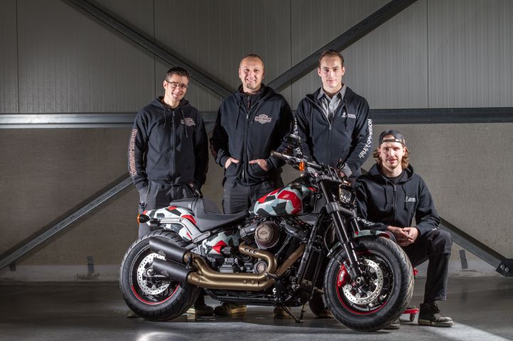 Van der Steen raconte : “Mais nous sommes évidemment allés plus loin que le design. Nous avons monté toute une série de nouvelles pièces du catalogue H-D sur le Fat Bob, sans toutefois perdre de vue les frais. Nous voulions créer une machine qui n'a pas seulement un look extraordinaire, mais qui est également abordable. Ainsi avons-nous mis la laque sur une base auto-adhésive, de manière que l'acheteur puisse toujours changer le résultat. Avec ce type d'astuces, nous pensons servir au doigt et à l'œil le groupe cible jeune, nouveau qui – heureusement – se montre de plus en plus souvent dans notre showroom.”