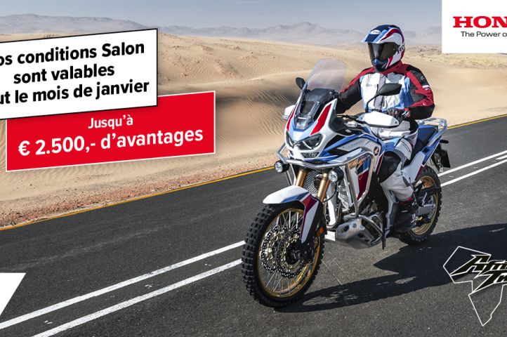Pour vous mettre dans l’ambiance, vous pourrez repartir du Salon avec une belle photo prise sur la toute nouvelle Africa Twin Adventure Sports. Imprimez ce Save the date et partagez-le sur Facebook pour gagner l’un des prix mis en jeu. Qui sait, vous pourrez peut-être piloter la toute nouvelle Africa Twin pendant une semaine!