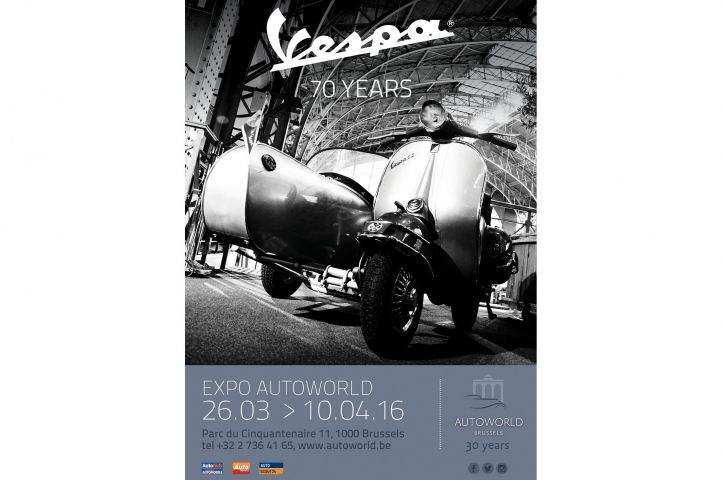 Une grande exposition durant les vacances de Pâques (du 26 mars au 10 avril), suivie (jusqu’au 24 avril) d’une mise en avant "in the spotlight" de quelques modèles parmi les plus emblématiques, c’est ce qu’offre Autoworld au plus mythique scooter italien pour fêter son 70ème anniversaire.