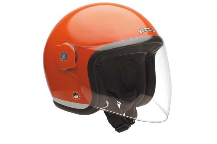 Mais Tucano Urbano, c'est aussi une ligne de casques qui ne manquent pas de style. Le El'Met Orange Fluo que vous pouvez admirer ici possède une calotte en fibre de verre et une doublure cuir/polyester détachable et lavable. La visière est amovible et peut être remplacée aussi par une visière plus grande ou des plaques latérales.