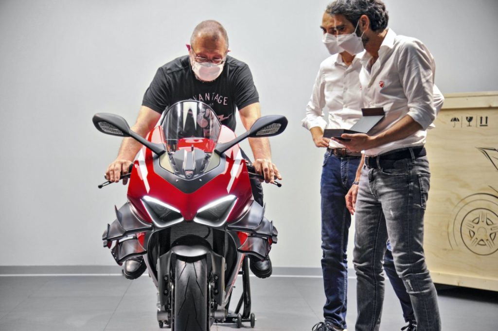 "Lorsque j'ai reçu l'appel et l'invitation officielle pour venir à Borgo Panigale afin de réceptionner ma Superleggera V4, la numéro 001 sur 500, et même si je suis un Ducatista depuis toujours, j'en avais les jambes qui tremblaient d'émotion," explique notre compatriote. "Un tel accueil, même si j'ai été le premier à appeler et à commander cette moto, c'est quelque chose d'inimaginable. Ce sont des journées comme celle-ci qui font de Ducati une marque unique et différente de toutes les autres."