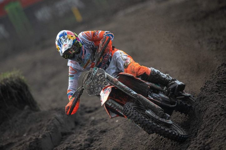 Si la météo avait épargné les pilotes samedi, la pluie s’est ensuite invitée sur le tracé néerlandais et a sensiblement compliqué les choses pour les pilotes comme pour les mécaniciens, qui se rappelleront de ce début de saison bien perturbé par la météo. Longtemps leader de la première manche MX2, Tom Vialle n’a pu résister aux assauts de Jago Geerts, impressionnant d’aisance ce weekend. Une aisance qu’il allait encore afficher en seconde manche, mais cette fois en partant en queue de peloton après avoir chuté au départ.