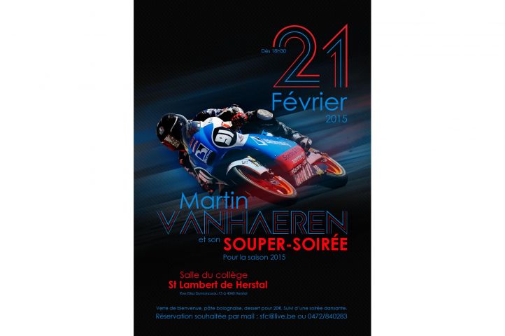 Afin d’aborder dans les meilleures conditions cette saison 2015 qu’il vivra au sein de l’équipe KRP, et qui débutera fin avril sur le Circuito do Algarve au Portugal, Martin Vanhaeren organise ce samedi 21 février un souper à la salle du Collège Saint-Lambert de Herstal.