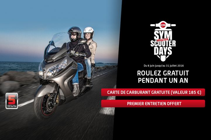 A l'occasion des Maxiscooter Days de SYM, qui ont débuté le 8 juin et se poursuivront jusqu'au 31 juillet, la marque offre des conditions très séduisantes à l'achat de différents modèles de sa gamme.