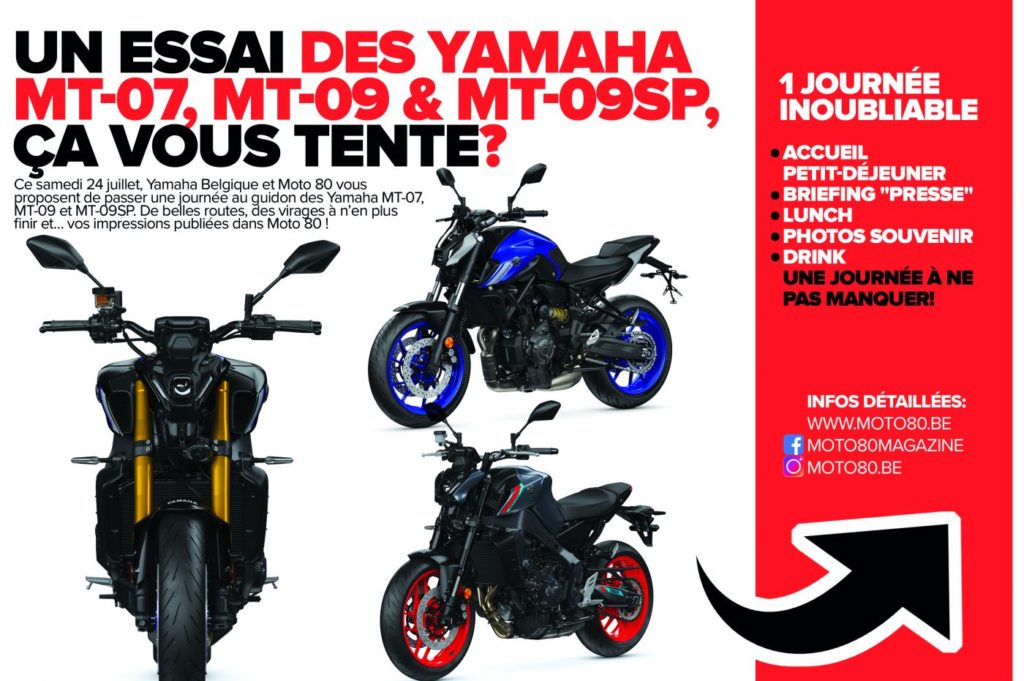 Ce samedi 24 juillet, rejoignez-nous pour prendre le guidon des Yamaha MT-07, MT-09 et MT-09SP!