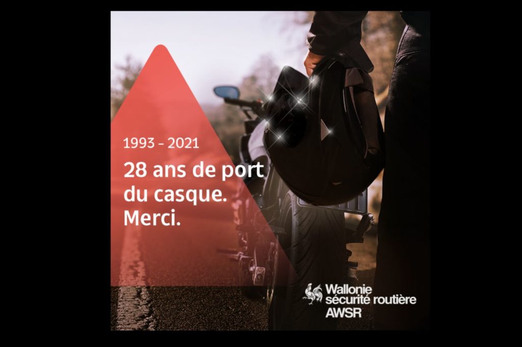 Loin du discours simpliste de Vias, l'AWSR (Agence wallonne pour la Sécurité routière) joue la carte de l'humour, de l'actualité et du décalé pour faire passer un message qu'il n'est jamais utile de rappeler: le port du casque (un bon casque!) à moto sauve des vies.