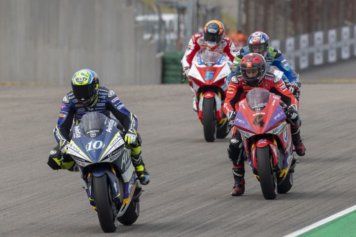 Bien entendu, il reste un long chemin à parcourir avant que les performances de ces Ego Corsa MotoE puissent rivaliser avec nos bons vieux moteurs thermiques. Toutefois, force est de constater que ces motos électriques sont loin d’être ridicules. “Il m’est difficile pour l’instant de pouvoir comparer nos performances à celles offertes par les moteurs thermiques. En Allemagne, nous tournions près de 7 secondes moins vite que les MotoGP. Actuellement, nous manquons de vitesse de pointe; notre vitesse maximum au Sachsenring était de 225km/h, soit à peine 10km/h plus vite qu’une Moto3… qui ne pèse que 80kg! Quoiqu’il en soit, je pense que personne ne s’attendait à ce que nous soyons si performants dès le début du championnat.”