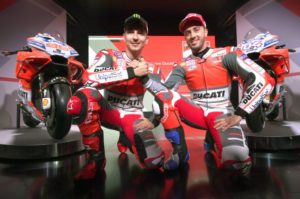 Le team Ducati MotoGP a dévoilé ce lundi ses nouvelles Desmosedici. C’est une toute nouvelle livrée qui a été dévoilée, disposant d’appendices aérodynamiques impressionnants mis en valeur par une livrée rouge et grise du plus bel effet.