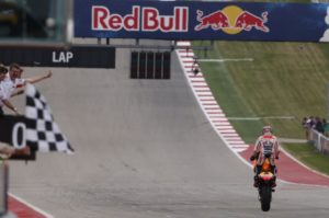 Lorenzo et Iannone accompagnent Marquez sur le podium du Grand Prix des Amériques.