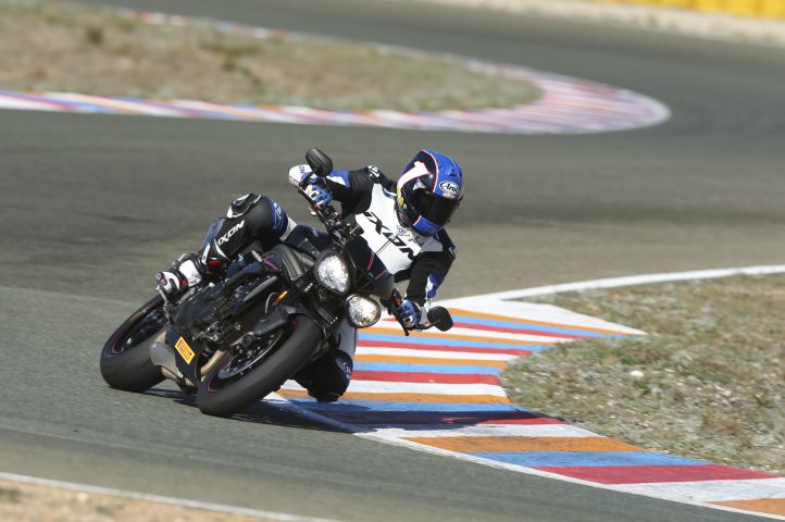 Bien qu’elle ne soit a priori pas destinée au circuit, les responsables de Triumph ont tenu à nous faire apprécier le comportement de la Speed dernière version «en el circuito de Alméria».