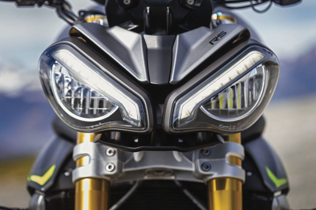 Le trois cylindres qui anime la Speed Triple RS voit sa cylindrée passer à 1.160cc et gagner pas moins de 30ch en bondissant de 150 à 180 pur-sang, soit de quoi repositionner ce roadster pas loin des machines les plus puissantes de la catégorie. L’augmentation du couple va de pair et grâce à un travail sur l’inertie, le régime maximal grimpe de 650tr/min. Admission d’air et échappement ont été modifiés, et je me dois même de préciser que l’ensemble des pièces moteur ont été repensées pour, à la fois, accroître les performances et réduire les masses en mouvement. Désormais plus compact, le bloc, à lui seul, perd 7kg. Et le poids de l’ensemble affiche à présent 198kg en ordre de marche, soit dix de moins que l’ancienne version. Au total, le constructeur annonce un rapport poids/puissance en hausse de 25% par rapport à la génération précédente. Embrayage plus léger et nouvelle boîte de vitesses dont les rapports de première et de deuxième ont été raccourcis font également partie des modifications. Le châssis évolue, lui aussi, et Triumph a particulièrement travaillé sur l’équilibre des masses. Le cadre en aluminium s'avère 17% plus léger et privilégie une répartition du poids plus en avant et plus bas. En ce qui concerne les composants, le matériel s'avère de qualité puisque les suspensions viennent de chez Öhlins et se montrent entièrement réglables. Les freins sont signés Brembo Stylema et pour les pneus, on retrouve les excellents Racetec RR de chez Metzeler. En option, il est même possible de choisir les Pirelli SC2 pour un usage piste. Enfin, question esthétique, le phare et le feu arrière voient leur dessin modifié et présentent une nouvelle signature lumineuse.