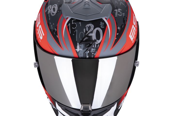 Dès l’enfilage, la qualité des matériaux employés se ressent, notamment au niveau de la texture de la garniture interne, d’une grande douceur. Bon à savoir, Scorpion a légèrement revu ses tailles. L’ajustement se fait donc encore plus précis, et c’est exactement ce que l’on attend d’un casque racing. Assez discuté, il est temps de prendre la piste. Tête dans la bulle, je bénéficie d’un excellent champ de vision et apprécie le travail réalisé sur l’aérodynamisme.