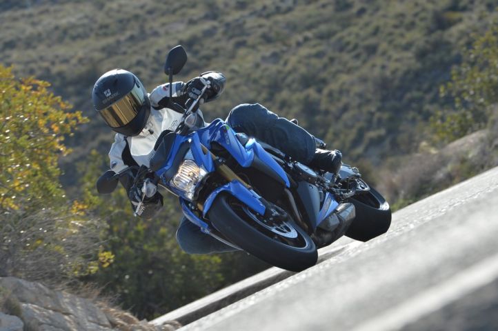 Les routes sinueuses du sud de l’Espagne mettent directement en avant les qualités dynamiques de la machines. Après une «brève» prise en main, le rythme de l’essai s’élève naturellement tant la Suzuki met en confiance. Toujours est-il que cet essai s’est transformé en «arsouille» d’environ 200 kilomètres pendant lesquels, personnellement, je n’ai pas réussi à prendre cette GSX-S en défaut. Le moteur est vraiment la pièce maîtresse de cet ensemble. Reprenant dès 2.000tr/min en sixième, il est capable de pousser sans s’arrêter jusqu’à… 264km/h, après il a fallu couper… Freinages sur l’angle, gros gaz en sortie de courbe, virages avalés à allures très rapides, accélérations et montées en régime impressionnantes, freinages de trappeur… toute la panoplie de l’utilisateur d’un gros roadster y est passée.