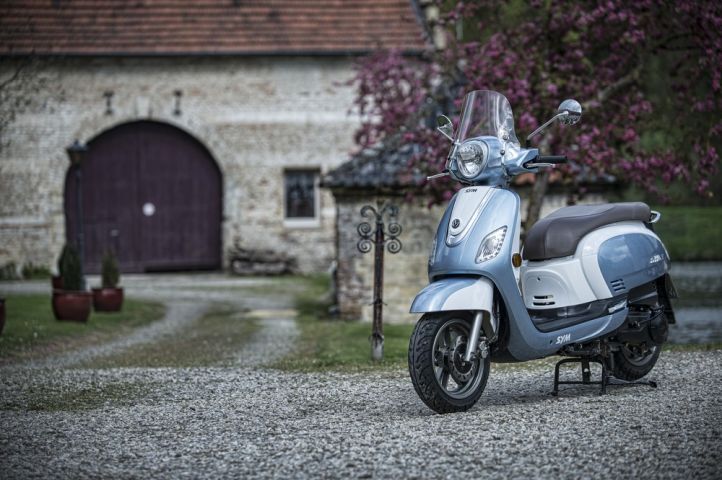Au guidon on retrouve une bonne position de conduite, assis bien droit et «sur» le scooter. Grâce au plancher plat, les pieds ont de l’aisance. Sym a pensé à changer la selle, plus plate et mieux rembourrée, en plus d’être plus agréable à l’œil. Ne soyons pas trop louangeurs, la position plaira aux utilisateurs pas trop grands, 1,80m semble être une limite absolue car au-delà, vous ne pourrez négocier un virage sans vous prendre le guidon dans les genoux, le seuil de plancher des Sym étant coutumièrement très haut. Par contre, si votre physique correspond, vous apprécierez l’accueil à bord parfaitement détendu… même si la selle paraîtra assez haute aux courts sur pattes. On conseille vivement le pare-brise optionnel équipant notre modèle d’essai, qui évacue agréablement le vent du buste.