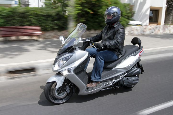 Le nouveau moteur 300 F4 (Fabulous-performance + Faithful-quality + Fantastic-efficiency + Fascinating-lower oil engine température = F4) développe pas moins de 29ch à 8000tr/min (30% de plus que le bloc précédent), avec un couple maxi de 27,4Nm à 6500tr/min. Légèrement mieux que les concurrents désignés: Honda SH300i d’un côté, Kymco Dink Street 300i de l’autre… Cette motorisation a fait l’objet de nombreuses améliorations: arbre à cames optimisant l’admission et l’échappement, piston anodisé, courroie de transmission renforcée (+40% de durée de vie), réduction des frottements internes et réductions globale des bruits de fonctionnement (responsables de pertes sensibles par effet de résonnance).