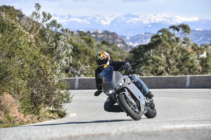 Grâce à l'effet bouclier généré par ce dernier, la marque annone une amélioration de 13% de l’autonomie par rapport à la SR/F… si le pilote accepte de jouer à la sole, couché sur le réservoir, derrière la bulle. Car en effet, par rapport au roadster, la position des repose-pieds a été abaissée et les poignées ont été relevées, ce qui bénéfice au dos du pilote, plus droit, générant donc une conduite plus détendue et confortable. Par contre, résultat des courses, la résistance à la pénétration dans l'air augmente… et annihile le gain généré par le carénage. 1-1, balle au centre.