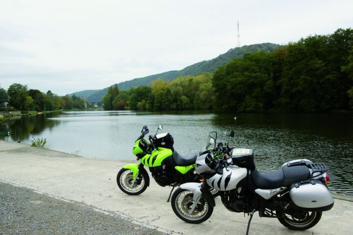 La route tournicote gentiment pour rejoindre le plateau. Nous quittons l’itinéraire "de base" pour suivre des panneaux interpellants. "Point de vue de la Sibérie", késaco? Un petit parking nous permet de laisser refroidir les moteurs. Cinq minutes de marche et nous découvrons un panorama impressionnant sur la vallée de la Meuse. Mais pourquoi la Sibérie? Pour une simple raison de degrés centigrades! Il fait par ici de trois à quatre degrés de moins que dans le centre de Bois-de-Villers, et ce en permanence. Une jolie descente, avec un revêtement de qualité, nous permet d’enquiller quelques épingles à cheveux bien sympa pour rejoindre les bords de Meuse. On arrive à Profondeville, Parfondeviye en wallon namurois. Après quelques centaines de mètres, on traverse le fleuve pour remonter la rive droite. Ne manquez pas de jeter un œil sur les splendides villas mosanes du début du siècle dernier. Certaines sont d'ailleurs classées et ce n'est que justice. Les bords de Meuse restent incomparables. Une atmosphère unique en Wallonie, de tourisme paisible et cossu, se dégage des lieux. On profite de cette rive droite trop souvent négligée pour s’imprégner de cette ambiance. A l’entrée d’Yvoir, on bifurque à gauche. Dès que l’on quitte la "fille de la Haute-Meuse", on longe une vertigineuse plaque de pierre bleue taillée dans la colline. Les grandes excavatrices semblent minuscules sous cette énorme masse minérale. Comme il fait humide, nos machines sont partiellement repeintes d'une gadoue blanchâtre, charriée par les camions. Nettoyage obligatoire au retour, tant cette bouillasse poussiéreuse est abrasive!