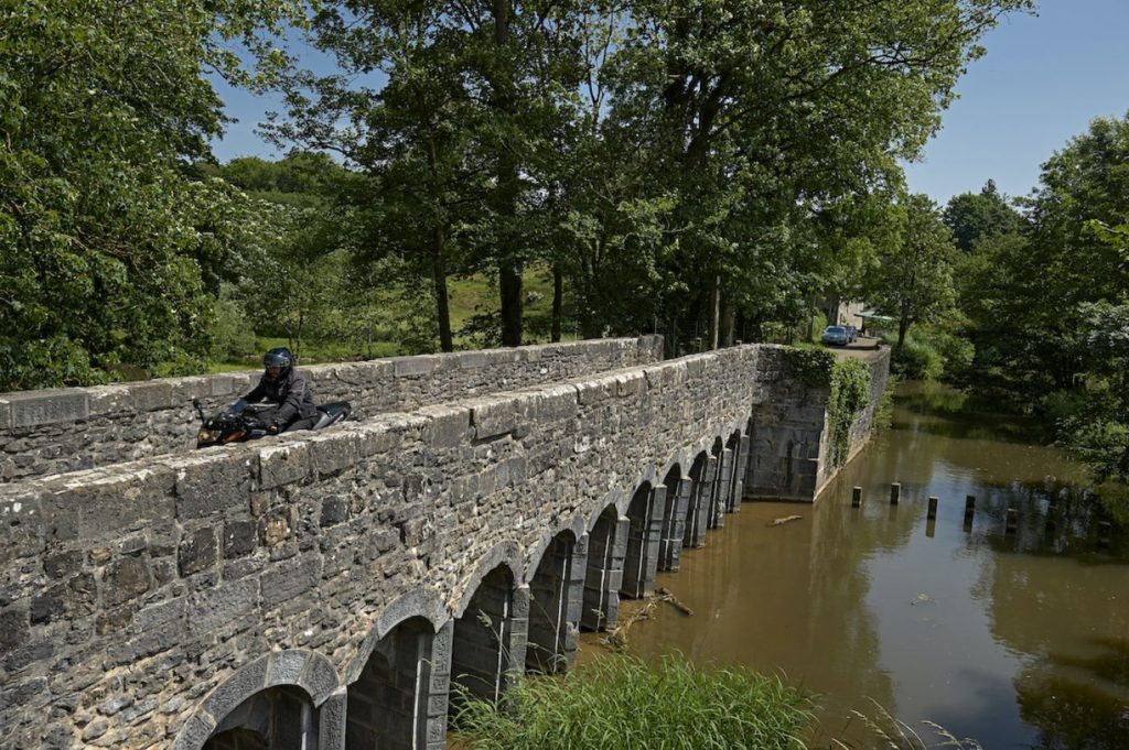 Nous reprenons les bécanes pour couper la chaussée Brunehault (ici N563) qui file vers Malplaquet et la frontière française. On traverse les villages d'Estinnes, Fauroeulx, Haulchin et Croix-lez-Rouveroy (château) avant que la direction générale ne s'infléchisse au sud-est vers Peissant et Merbes-le-Château. Le plaisir de rouler est bien présent mais sur ces voiries étroites et au revêtement pas toujours optimal, optez, si vous le pouvez, pour une moto légère et maniable plutôt que pour une grosse GT ou une sportive… À Labuissière, nous franchissons la Sambre à hauteur d'une mignonne écluse que jouxte un petit caboulot sans chichi. Bon à savoir si le soleil tape, comme ce fut le cas lors de notre passage…