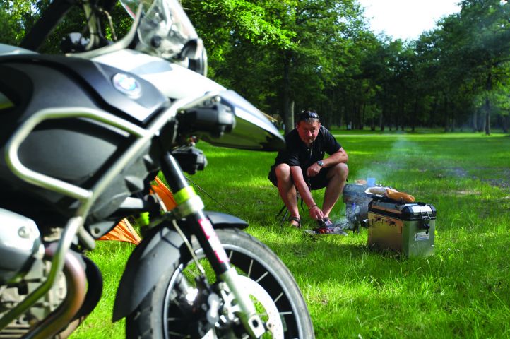 Vient maintenant le sacro-saint épisode des bagages. En général, c'est là qu'on commence à s'énerver un peu pour faire rentrer le sèche-cheveux de madame ou cette paire de baskets indéformables. Voici quelques petites règles à suivre pour ne pas transformer votre bécane en un louvouyeur automatique quand elle sera chargée. Tout le monde n'a pas une moto équipée de valises latérales et d'un topcase XXL. La chose qui compte vraiment, est l'étanchéité de vos bagages. Rien de plus énervant que de découvrir tous ses effets trempés de la dernière «drache» juste avant d'arriver à l'hôtel. Il existe des sacs étanches style «kitbag» en toile cirée qui sont très résistants, étanches et, surtout, leur structure non rigide permet de bien les tasser sur la moto. La règle absolue consiste à placer les objets les plus lourds le plus bas possible, afin de ne pas trop modifier le centre de gravité de la machine. Si vous partez pour plus de 15 jours, vous ne pourrez de toute façon pas prendre du linge de rechange pour toutes les vacances. Donc, emportez le strict nécessaire et vous ferez une petite lessive de temps en temps. Pour les vêtements, l'arme absolue s’appelle sac «sous-vide». Vous en trouverez de diverses contenances et à des prix très corrects, chez Décathlon notamment. À moins que vous ne vouliez ressembler à une gravure de magazine, optez pour cette solution et le «chiffonné-chic». Grâce à cette astuce, vous allez gagner une place considérable sur cette partie du chargement.